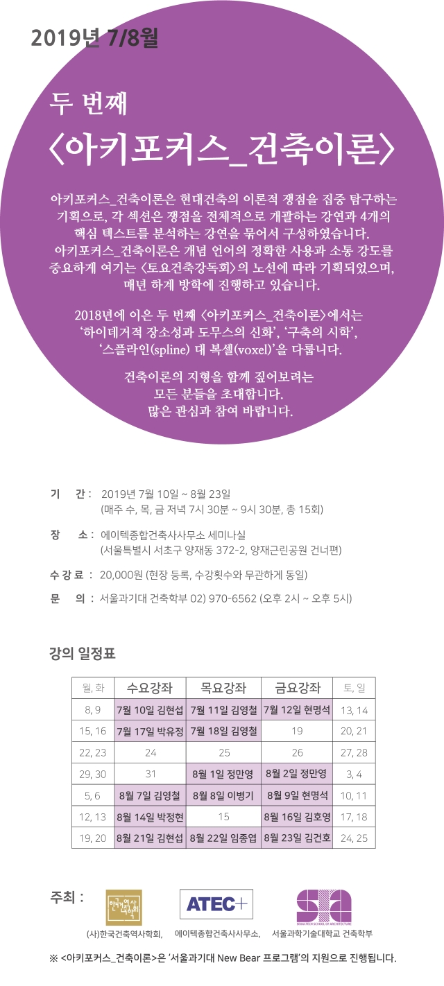 2019³â 7/8¿ù <¾ÆÅ°Æ÷Ä¿½º °ÇÃàÀÌ·Ð> ¼ö°½Åû ¾È³»